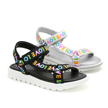 Chickita Nieuwe School Sliver En Zwarte Haak En Lus Kinderen Meisjes Sandaal Schoenen