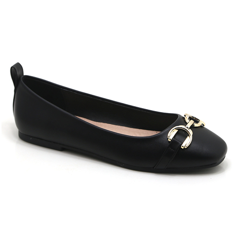 Chickita รองเท้าแตะหัวแหลมผู้หญิงสีดําสง่างามเป็นกลาง Jeffery หัวเข็มขัดโลหะออกแบบหัวสี่เหลี่ยมรองเท้าแตะรองเท้าแตะ