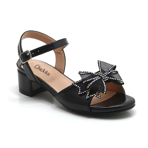 Chickita 2025รองเท้าแตะชุดเจ้าหญิงสีดำสำหรับฤดูร้อน, รองเท้าแตะชุดเดรสสั้นสำหรับเด็กผู้หญิง3D ผีเสื้อสีดำสายรัดที่หุ้มด้วยคริสตัล